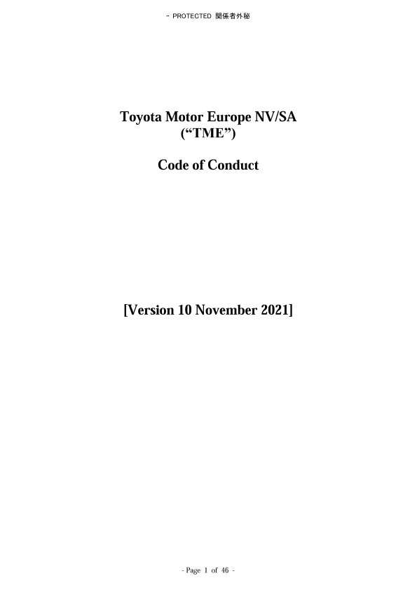 TME requests its Business Partners to promptly and in good faith report to TME facts or suspicions regarding actual or suspected acts of corruption/bribery committed by employees, sub-contractors, consultants, etc., of Business Partners, TME or any Toyota entity. Any report should be made to the TME Compliance Officer Karel.De.Wilde@toyota-europe.com or to TME’s whistleblower hotline (operated by an external provider and available 24/7, 365 days a year in 7 languages by phone or online). Business Partners can raise a concern anonymously.
